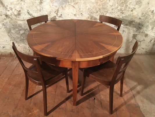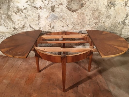 Nussbaum-Ausziehtisch furniert mit Einlageblätter